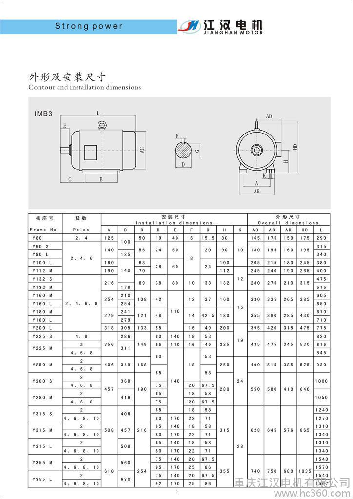 重庆江汉电机Y系列三相异步电机的详细描述: