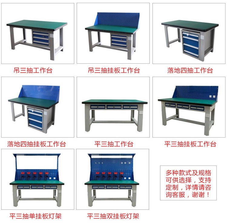 3、根据用户要求,工作台桌面可选择:高分子复合桌面、防火板桌面、不锈钢包