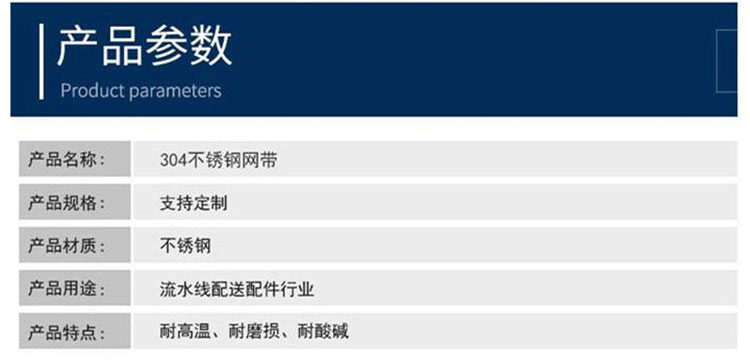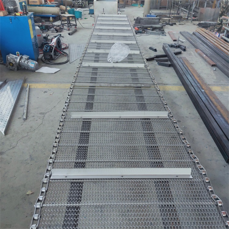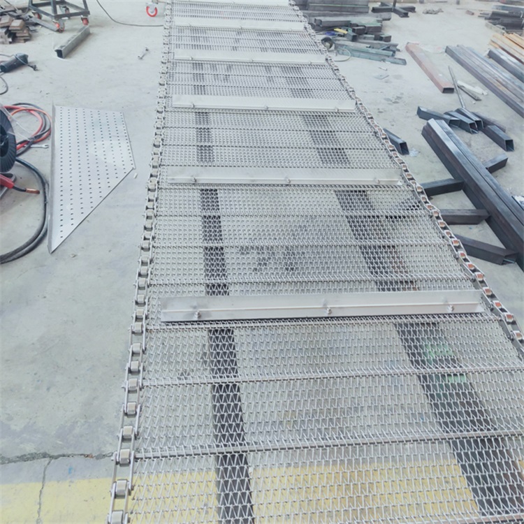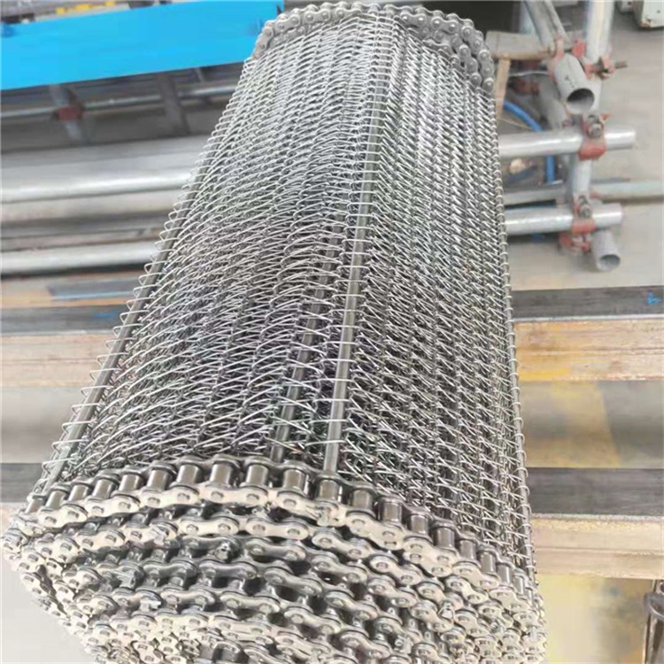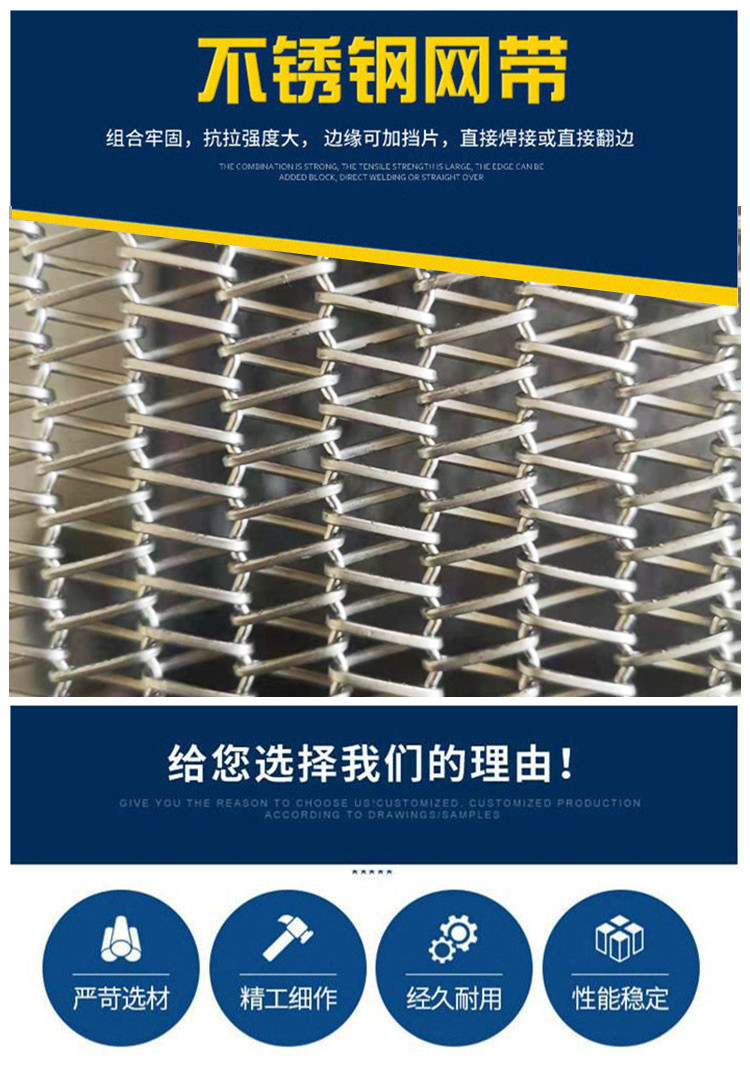 网带是一种采用静摩擦的方法,以摩擦驱动以连续方式运输物料的机械。应用它,可以将物料在一定的输送线上,从供料点到卸料点间形成一种物料的输送流程。它既可以进行碎散物料的输送,也可以进行成件物品的输送。除进行纯粹的物料输送外,还可以与各工业企业生产流程中的工艺过程的要求相配合,形成有节奏的流水作业运输线。不同环境的使用的网带材质也有所不同,比如碳钢、镀锌铁丝,弹簧钢等。应用工作环境的不同决定了材质的选择。