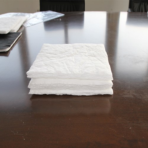 熔喷双组份吸音材料是通过吹熔微纤维技术加工而成的无纺布衬垫,是一种由直径为1-4 微米的超细纤维和直径为20-30 微米的短纤维组成的无纺布材料。这种吹熔的加工方法,可以实现用更细微的纤维制成质轻、膨松的材料。这样当声波振动通过熔喷双组份材料中的纤维孔隙时,在摩擦损耗等作用下,导致通过的声音的能量**被转化成热能从而起到隔音、吸音的效果。