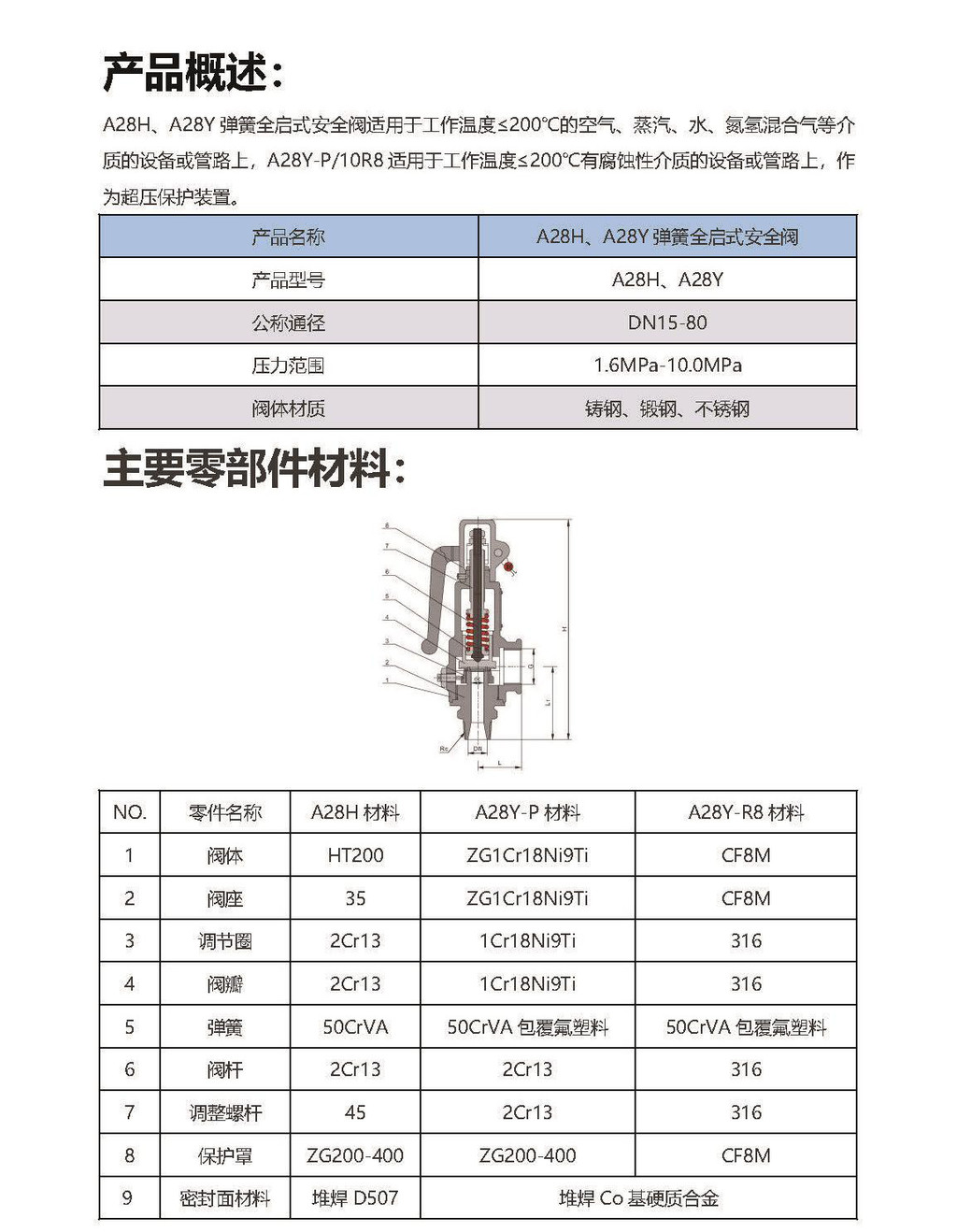 | 阀瓣开启高度 | 全启式安全阀 |
