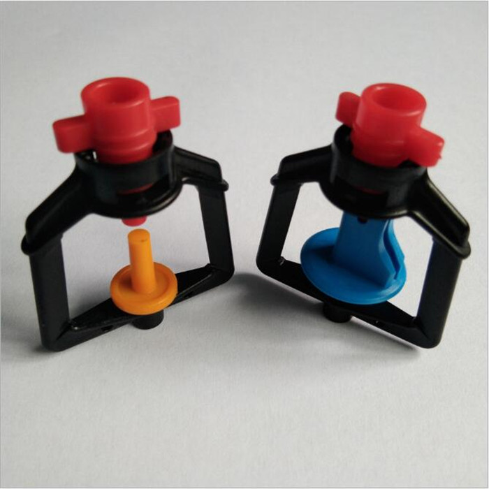 相对其他微喷头而言,具有覆盖范围大的优点。不论是配插地针使用还是倒置安装时均可配合整体式膜片防滴阀,有效杜绝停喷后的滴漏伤苗现象。 注意事项:此喷头分为倒挂式和 地插式两种,颜色和款式等外观都是一样的,只是中间的转轮稍有区别,但喷洒的方向是不同的,即向下和向上两个方向: 比如这个倒挂式**需要使用向下的喷头 主要用途: