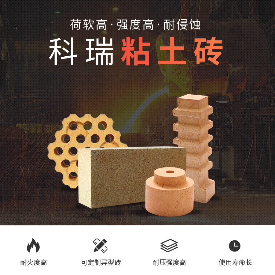 粘土耐火砖Al2O3含量一般在30%~40%,Fe2O3含量小于2.0~2.5%。粘土耐火砖属于弱酸性耐火制品,能抵抗酸性熔渣和酸性气体的侵蚀。具有耐火度高、体积密度致密、气孔率低、优良的高温蠕变性能和较好的体积稳定性等特点。