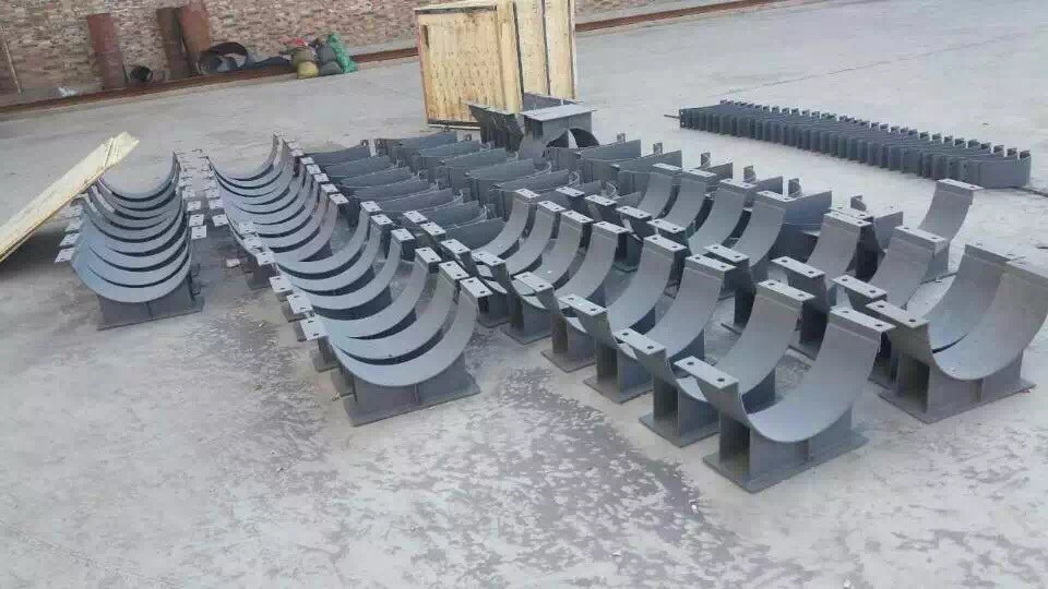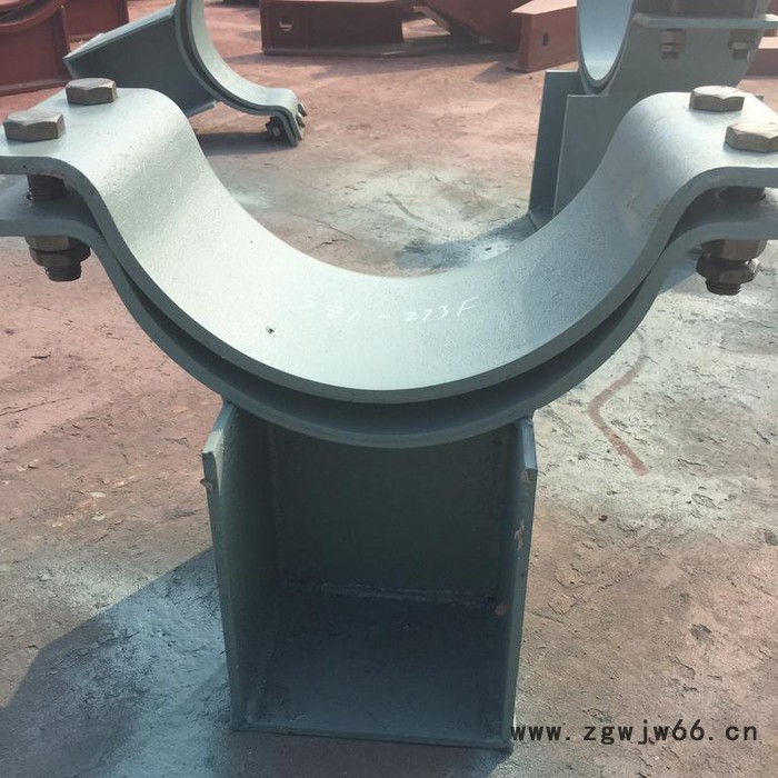 宇正生产SZ1水平管道管夹支座,是华东电力设计院《火力发电厂汽水管道支吊架设计手册》中管部支架产品之一,该型式在设计上有三种:当管径≤DW76,温度t≤300°C时,产品结构组成为双螺栓管夹×1+工字钢;当管径≤DW76,温度t>300°C时,产品组成为双螺栓管夹×1+钢板焊接而成的T型托座;当管径>DW76时,产品结构为四螺栓管夹×1+钢板焊接而成的盒型底座。SZ1水平管道管夹支座的适用范围是t≤555°C,当t≤300°C时,主体材质为A3;当300°C<t≤450°C时,主体材质为20#钢;当450°C<t≤555°C时,主体材质为12Cr1MoV。当支座滑动面带有聚四氟乙烯作滑动材料时,应在规格中注明有“F”字样,聚四氟乙烯的厚度一般为1.5mm。标号示例:水平管管夹支座(带聚四氟乙烯),t=555°C,DW245,SZ1-H245F。该型式适用管径介于DW32-DW1020之间,如客户有特大管径需求,可予以设计制作。