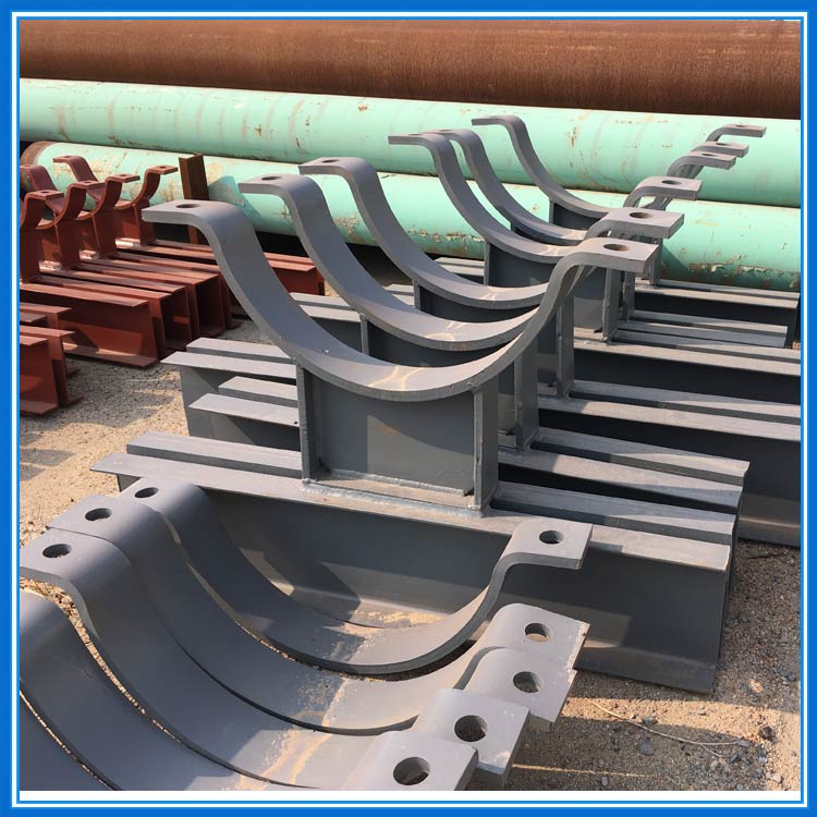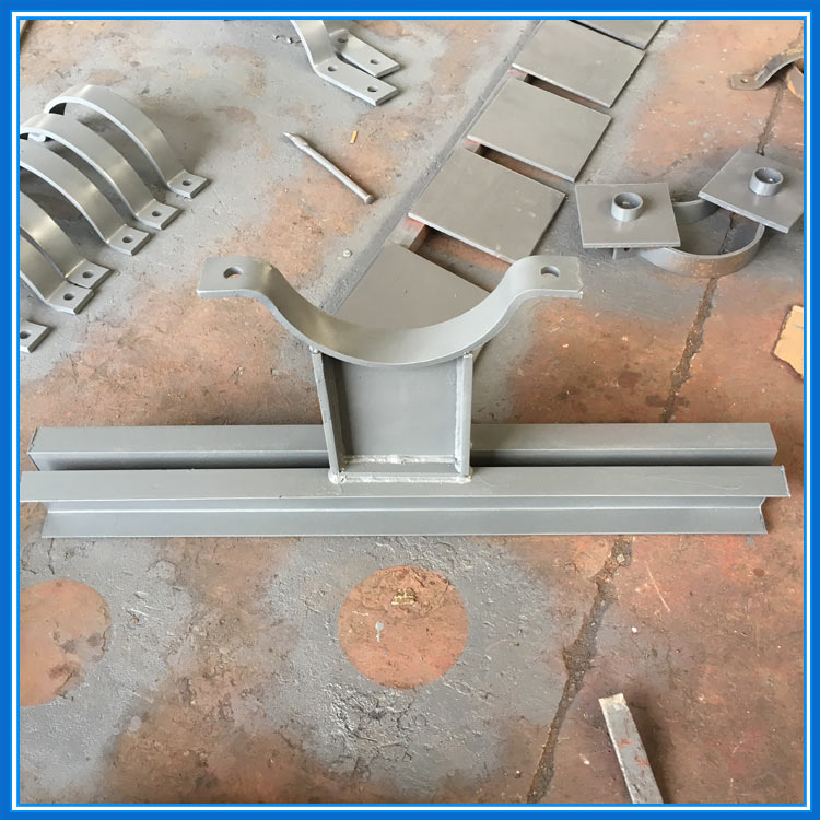 管夹横担是由支座和横担组成,支座用于焊接管道,横担两侧的孔用吊杆与上方弹簧相连接,对管道的上下