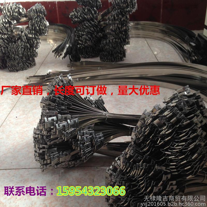 电力标牌专用不锈钢扎条,抽紧式钢丝封,不锈钢扎带产,依据使用场地可灵活扎。抗老化、防腐蚀、紫外线、扎力紧、不生锈。产品优势拉力**不低于80KG价格实惠,质量**,适用于露天。潮湿。高温等室内外场所捆扎。不锈钢电缆扎带的技术性能完全符合IEC92号≤船舶电气设备≥有关规定。扎带正常工作T条件环境温度--60℃工作温度±85℃。不锈钢扎条广泛应用于工业、农业、通信、石油、航空、交通、船舶工业。产品名称:不锈钢扎带/电力标识牌专用扎带/杆号牌不锈钢扎带/1米1.2米产品规格:1米 1.2米 1.5米(支持定做)产品材质:不锈钢适用于露天,潮湿,高温等室内外场所捆扎电缆,具有抗磨,抗腐蚀,抗放射和防火性能。扎带正常工作条件:温度-60℃~+85℃。 广泛应用于工业、1不易生锈、抗拉强度高、耐腐蚀力强;2使包装件美观;3抗老化,使用时间长;4能够在恶劣的条件下保持良好的使用性能。二 使用范围:主要适用于电力杆号牌,警示牌等,安装方便快捷农业、通信、石油、航空、交通、船舶工业。