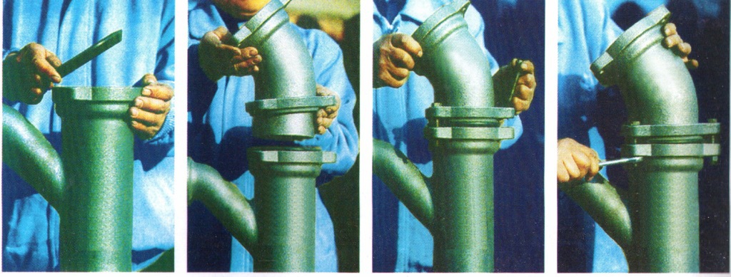 三、柔性铸铁排水铸铁管施工的主要方法: 我公司生产销售的铸铁排水铸铁管是近年来一种广泛应用于建筑工程中排水系统中的管材。该管材属于金属型离心铸造,组织致密,抗拉强度高;其壁厚均匀表面光滑;采用柔性接口连接,橡胶圈密封,具有良好的抗震性能,同时它又能阻滞噪音传递,为最安静管道;该管材能承受高温,防火性能好,可满足消防安全需要;它耐腐蚀,抗老化,使用寿命长。柔性铸铁排水铸铁管是理想的高层建筑及超高层建筑的排水管材。 柔性铸铁排水铸铁管分为卡箍式柔性接口和法兰柔性接口两种主要安装方法。关于它的使用方法目前国家有具体的规范要求,我们结合产品说明从安装过程中总结出它的安装施工方法: (一)卡箍式柔性接口安装方法: 1、施工安装应根据需要长度,把直管固定牢固,用砂轮切割机断开,断面应垂直、光滑,不得有飞边、毛刺,以免刺伤橡胶密封圈。 1、在插口上面画好安装线,承插口端部的间隙取5-10mm,在插口外壁上画好安装线,安装线所在平面应与管的轴线垂直。 金属型离心铸造、组织致密、抗拉强度高