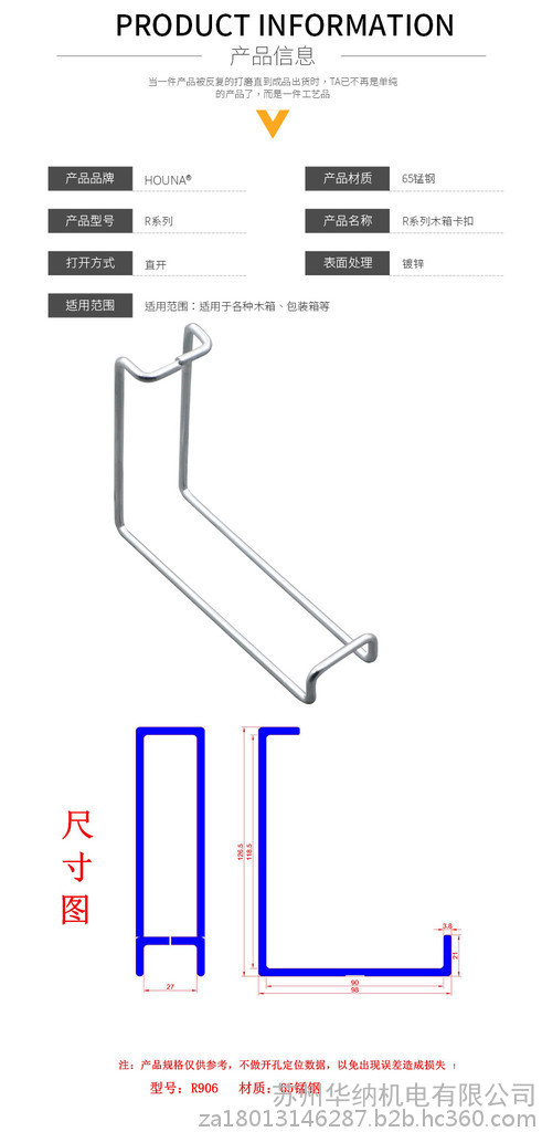 HOUNAR900免熏蒸包装箱木箱卡扣紧固件 搭扣 ** 弹簧扣 木箱卡扣 卡环 钢丝扣