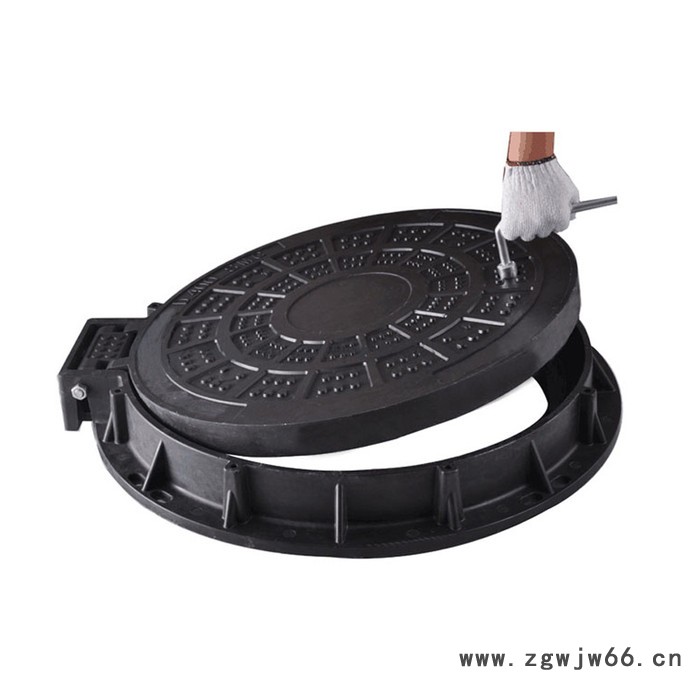 五防井盖,即:防响、防跳、防盗、防坠落、防移位防滑五防井盖的检查井内圈口槽放置橡胶圈