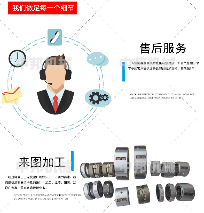 浙江中邦机械有限公司专注.滑差轴,分切.分条机收卷用滑差轴.滑差环单元等配件,款式多型号丰富的工厂。相应的配件有扁气囊摩擦条牛皮条带.
