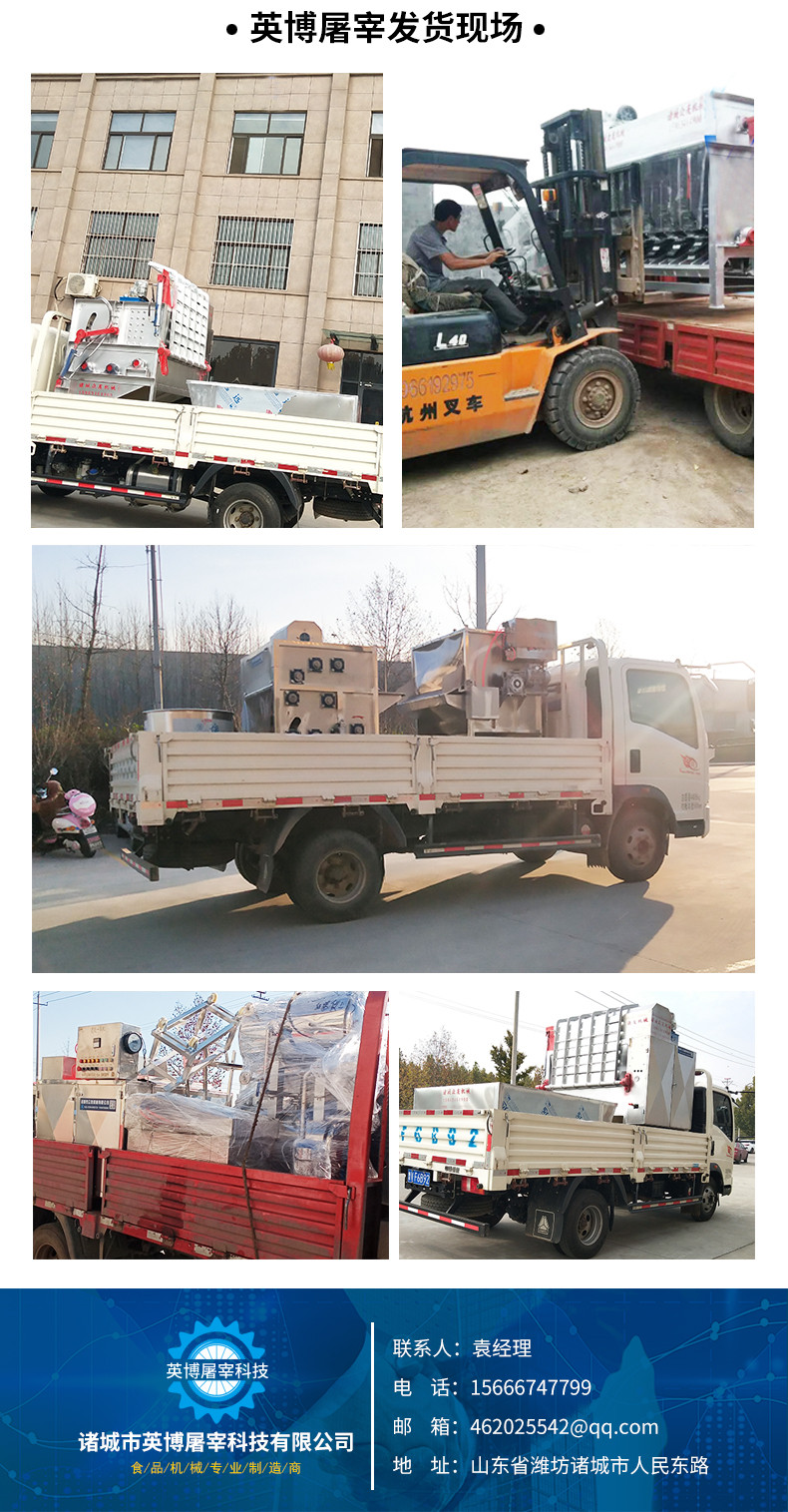 电机带动两个刨毛滚筒转动,使夹在两者之间的猪体迅速的翻滚,猪体与刨片、猪体及猪体之间相互摩擦,从而达到去毛的目的。猪体进入脱毛机前进行浸烫,烫毛效果的好坏直接影响脱毛效果,机内装有一喷水管,在刨毛过程中喷淋温水,以冲洗猪体上的残毛、血污等。捞耙下降以前,注意检查捞耙下面有无猪体及杂物,要及时清除,以免捞耙下降时,遇到障碍物而使机器损坏。全自动脱毛机脱毛干净操作简单,整羊脱毛,代替松香去毛法,整羊脱毛机打毛干净,节约人工,降低成本。