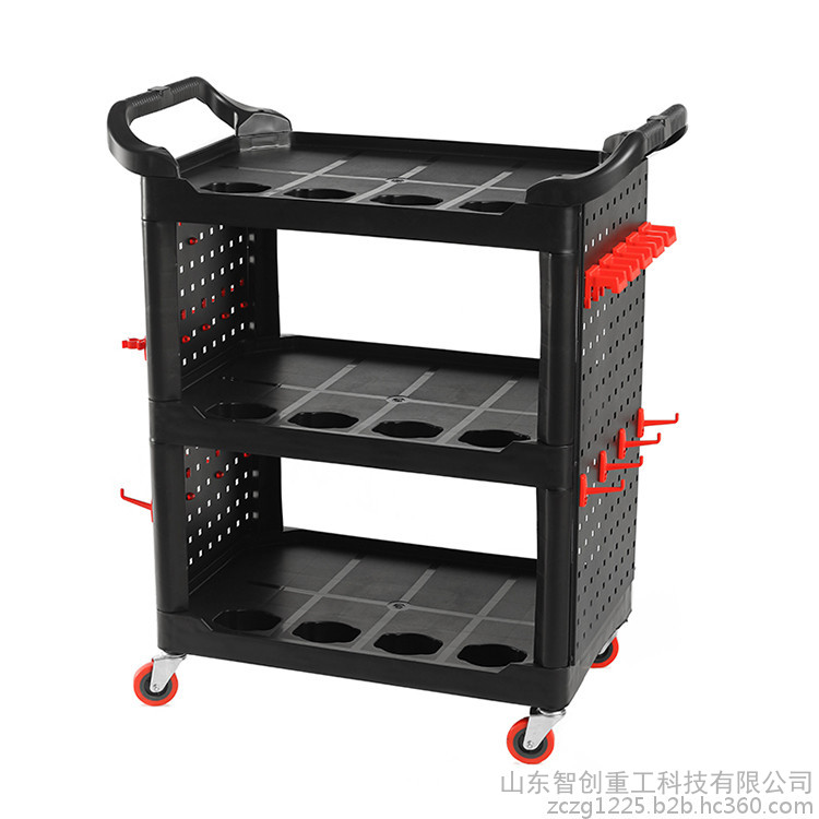 性能特点:材质:PP工聚;颜色:磨砂黑;外型规格:长840mm;宽430mm;高960mm。加厚多功能三层推车大尺寸,加厚加料,强承重,应用广泛,大空间分层设计提升工作效率大空间带足更多工具分层设计再为翻找工具浪费时间,上层:可放置经常可以使用到的工具随手易拿,中层: 可放置常规工具不易乱,底层:可放置工具套装/工具箱等物品。