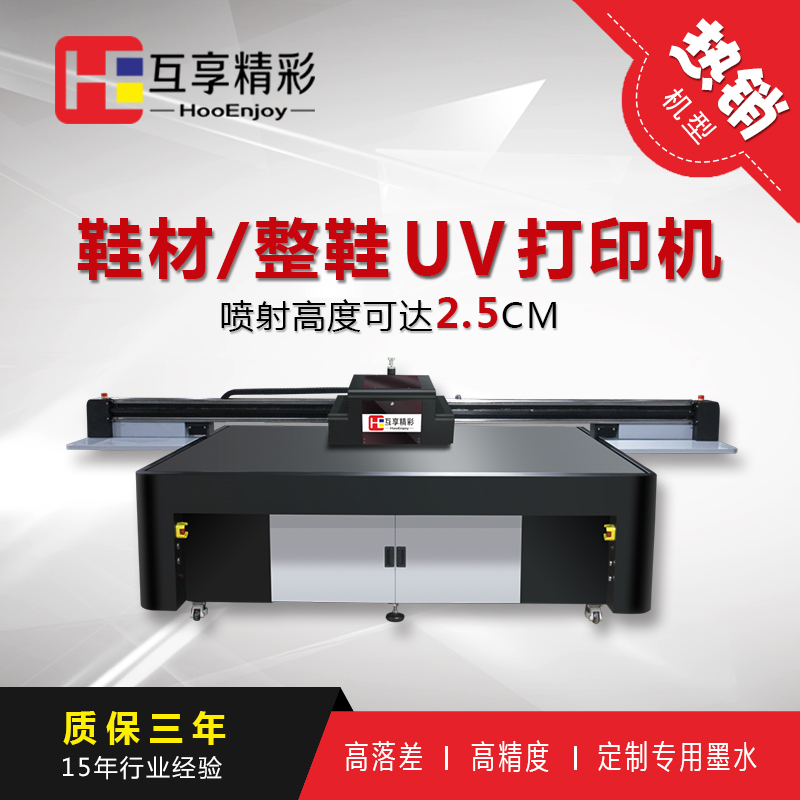 互享精彩HE2513鞋材鞋面图案UV打印机,全彩直喷打印,色彩绚丽,精度到、速度快、高喷射2.5公分落差打印,不飞墨,无重影