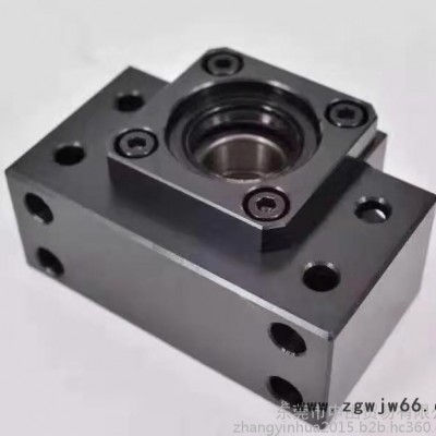 支撑座是连接丝杆和电机的轴承,构造与特长对标准滚珠螺杆库存品的轴端成品,预备了标准化的支撑单元EK、EF型,对一般滚珠螺杆预备了标准的支撑单元BK、BF型。固定侧的支撑单元装有经预压调整的JIS5级的角接触球轴承。特别是在EK6、8的超小型式中,装有为超小型滚珠螺杆所开发的接触角45°的超小型角接触球轴承,能获得高刚性、高精度的稳定的回转性能。