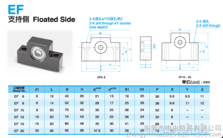 支撑座是连接丝杆和电机的轴承,构造与特长对标准滚珠螺杆库存品的轴端成品,预备了标准化的支撑单元EK、EF型,对一般滚珠螺杆预备了标准的支撑单元BK、BF型。固定侧的支撑单元装有经预压调整的JIS5级的角接触球轴承。特别是在EK6、8的超小型式中,装有为超小型滚珠螺杆所开发的接触角45°的超小型角接触球轴承,能获得高刚性、高精度的稳定的回转性能。