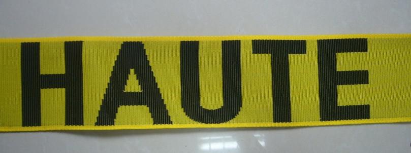11CM加宽黄色底黑色字提花涤纶织带 安全带绳 警示带 防紫外线
