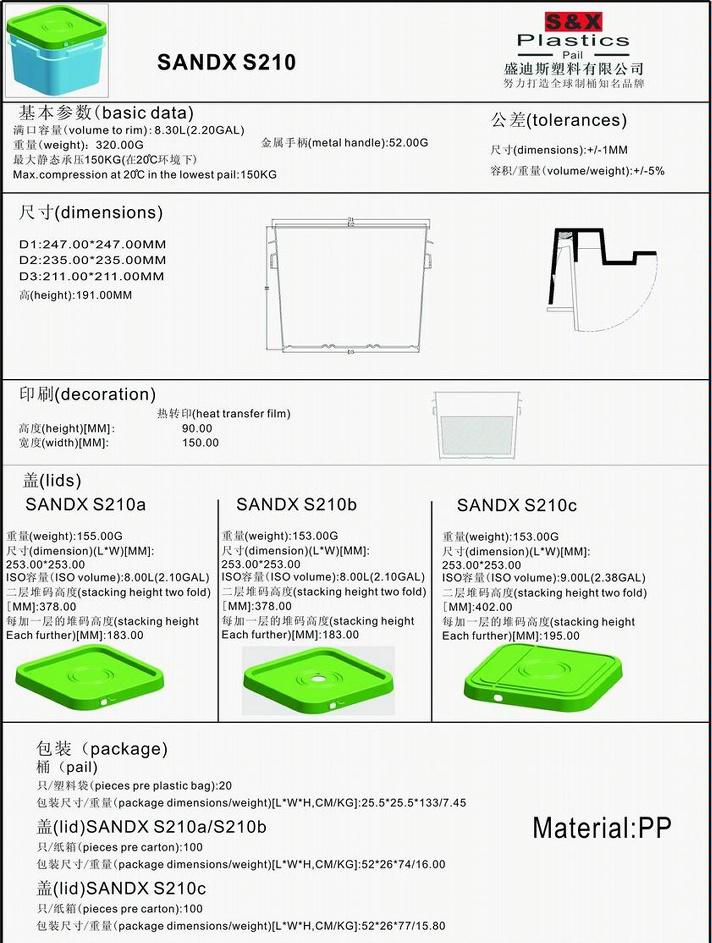 Sandx Plastics is one of the largest plastic pail factory in china market. We have the round plastic pail and the square plastic pail, at the same time, we have the straight side pail and plastic can. Our plastic containers are widely used in today's ever-changing marketplace. Plastic is a great material for containers because of its lightweight construction, cost, versatility and recyclability.