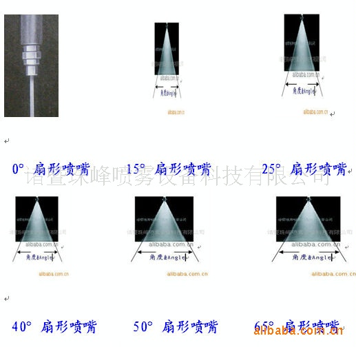 扇形喷嘴角度有0°,15°,25°,40°,50°,65°,80°,95°,110°.