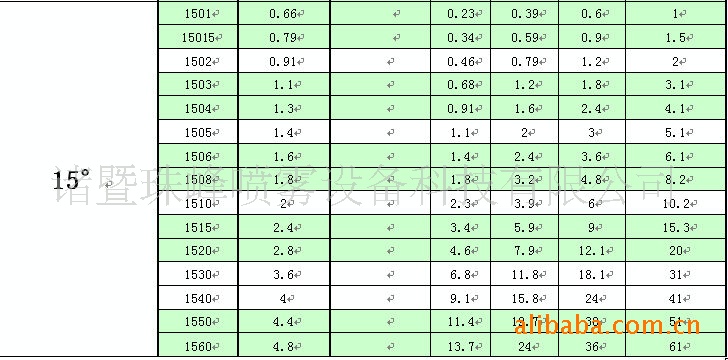 角度 | 喷雾角度是指雾化的液体散开的角度,即使是同一种喷嘴,它也会有多种喷雾角度可以选择,具体因客户需求而不同,但即使是同一喷嘴,在不同压力下,其喷雾角度也会有微小的差别。一般情况下,在安装高度、压力等不变的情况下,喷雾角度越大,其覆盖范围**越大。 |