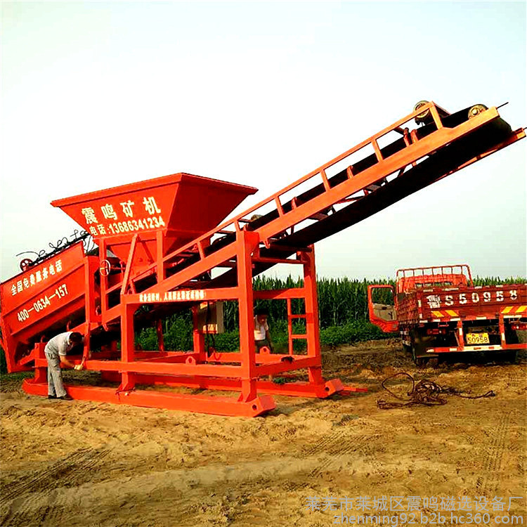 山东莱芜震鸣矿机制造的ZM-60型筛砂机是适用于建筑工地,混凝土搅拌站,河道,水库,煤场,采沙场的沙石分离设备---滚筒筛砂机。60型移动筛沙机具有转场方便灵活,结构简单,产量大,出沙颗粒均匀、细腻、且易操作,能够节省大量人工成本。