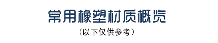 6 氢化橡胶(HNBR)可长期在-40-180度工作环境中使用,加工性能好,强度高,耐磨性优,变形小,同时具有独特的抗臭氧和耐硫化氢的作用。适用于发动机密封制品,油封,油田,钻杆用橡胶制品,低温油管,空调管,电子系统保护零件。