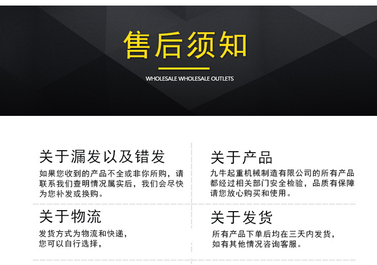 卓泰液压小吊机使用须知:1、使用前必须先作空载升降,检查液压系统是否正常。2、严禁超载。3、为确保人生安全,液压旋转吊车工作时,两侧少站或不站人为佳,以防发生意外。4、凡是轴肖油孔,每次使用前必须加润滑油。5、油箱内的液压油每工作500小时更换一次。6、工作结束后,应将各部擦洗清洁,不作业时应将吊车下降,以免活塞杆表面生锈。一般故障请参阅(故障及排除)。