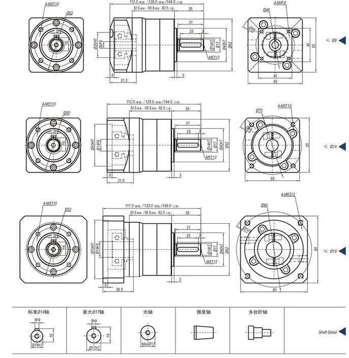 减速比(i) | 3 | 4 | 5 | 7 | 10 | 12 | 16 | 20 | 25 | 28 | 35 | 40 | 50 | 70 |