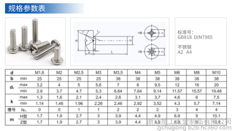 | 类别 | 十字槽盘头机螺钉 |