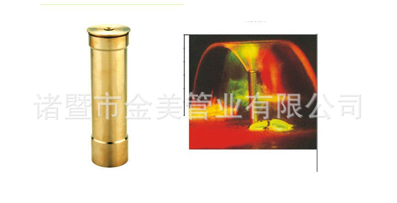 特点:喇叭花喷头又称牵牛喷头。它是利用折射原理,喷水时形成均匀的薄膜,其形状在无风和一定的压力下可形成完整的喇叭花型,这种喷头适用于室内或庭院的喷水池,用阀门调节水量,同时调节顶部盖帽,使喷水花型达到**效果。 | |||||
