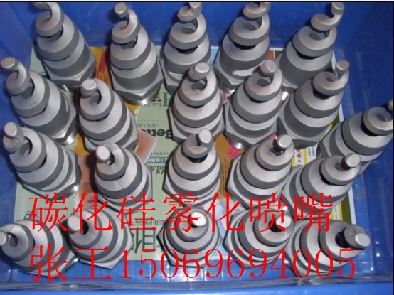 这种喷嘴的设计思路与空心锥旋流喷嘴相似,所不同的是涡旋腔封闭端的顶部使部分液体转向喷入喷雾区中央,以此来实现实心锥形喷雾效果。该喷嘴允许通过颗粒的尺寸为喷孔直径的80%-100%,喷射的液滴平均粒径比相同尺寸的空心锥形喷嘴的大30%.50%,在吸收塔中应用时可以采用氮连接碳化硅陶瓷材料(SNBSC)。