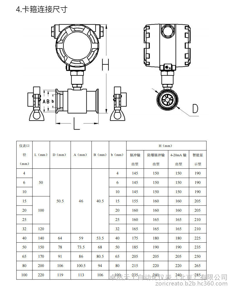 ZORICREATO/卓然天工FMTB200燃气涡轮流量计 304卡箍螺纹连接 气体智能涡轮流量计 高精度数显流量计