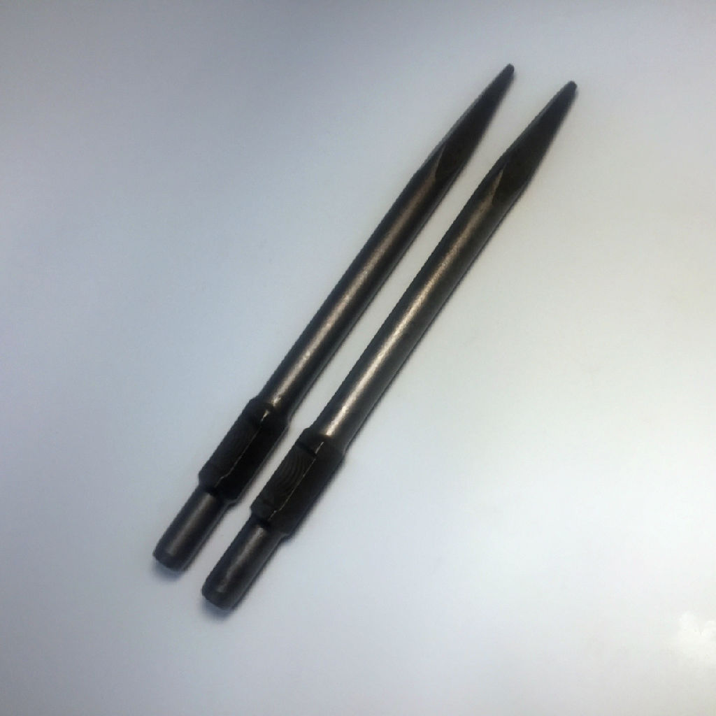 镐钎系直接和工作物接触的工具,镐钎的材料,尺寸和形状对气镐之生产率有显著影响,镐钎的形状和长度视击穿矿层之硬度而定,如矿层愈硬则镐钎愈短,反之则长。软矿或带有裂纹之矿层则选用长度为300-400毫米,硬而韧之矿层,则选用150-300毫米。