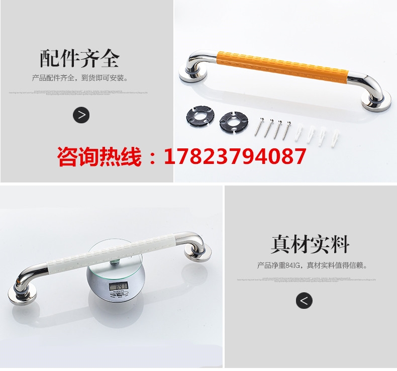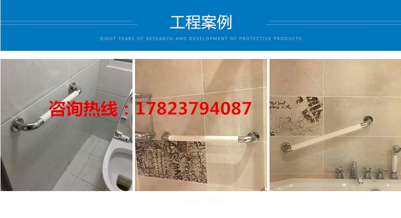 6、浴室防滑扶手(卫生间扶手、卫浴抗菌扶手)完全达到国家提倡的无障碍标准;