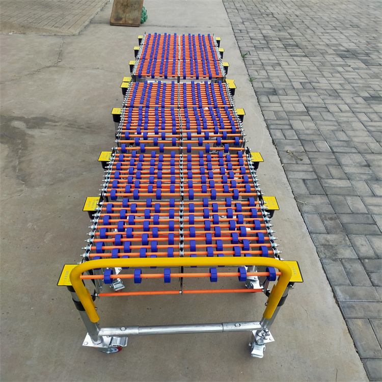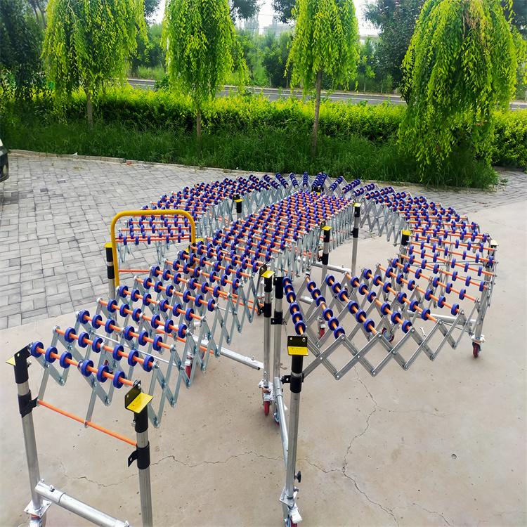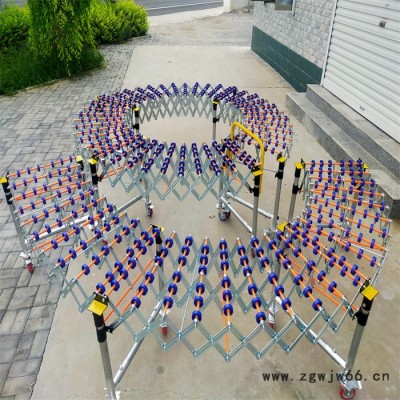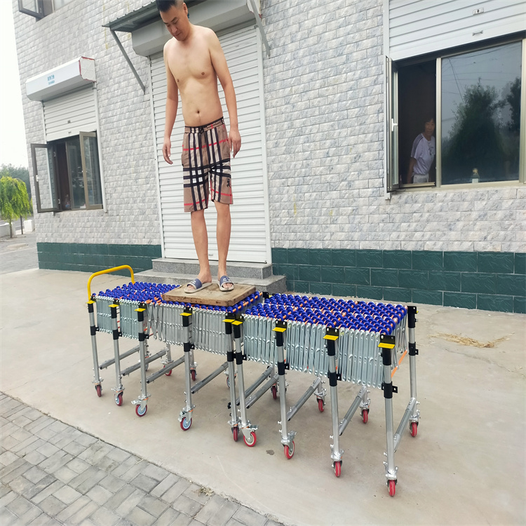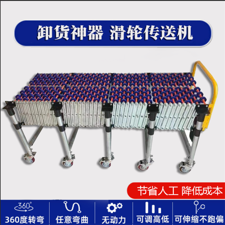 伸缩线无动力滚筒卸货神器 输送设备中伸缩式输送机设计,使用灵活,因而受到用户的欢迎,是轻型输的饺校者,安装方便,可灵活改变输送方向,特定时可以大于180。伸缩机带动力后,使用更方便。