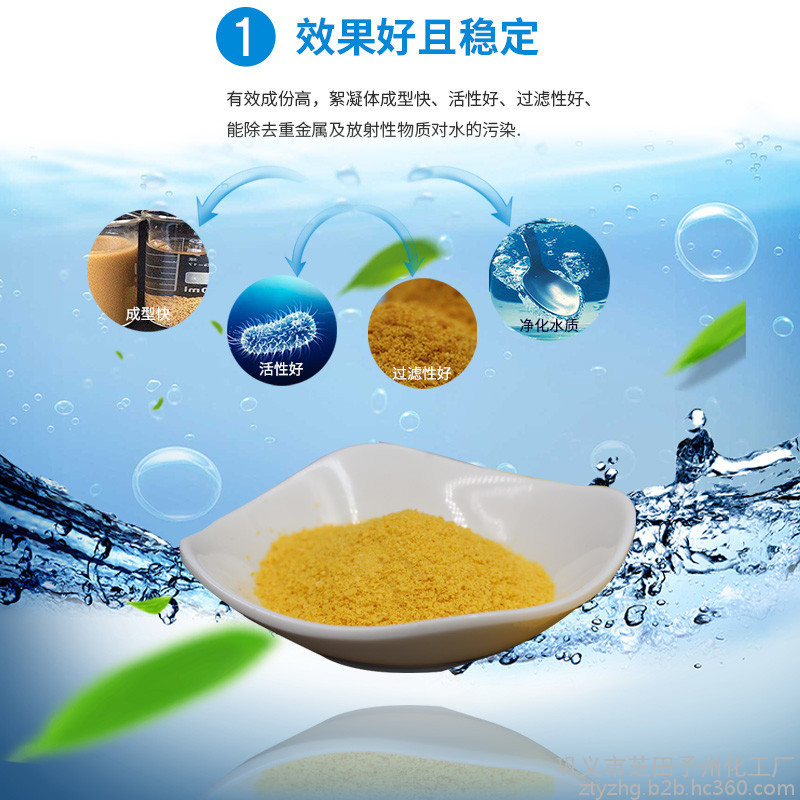 1、效果好且稳定:有效成份高,絮凝体成型快、活性好、过滤性好、能除去重金属及放射性物质对水的污染;