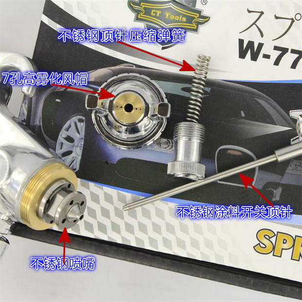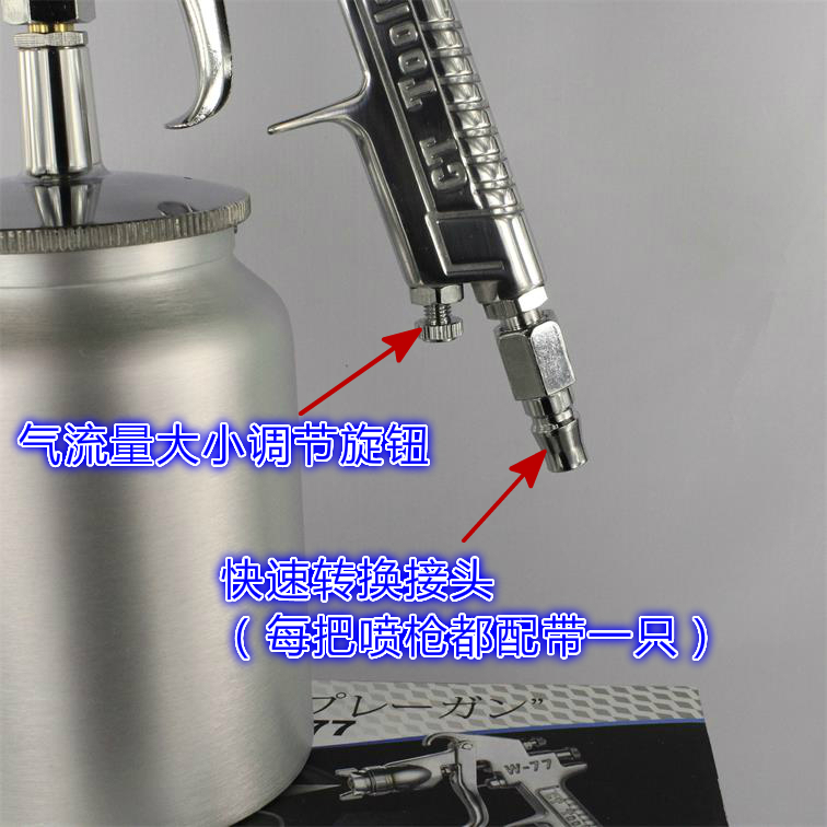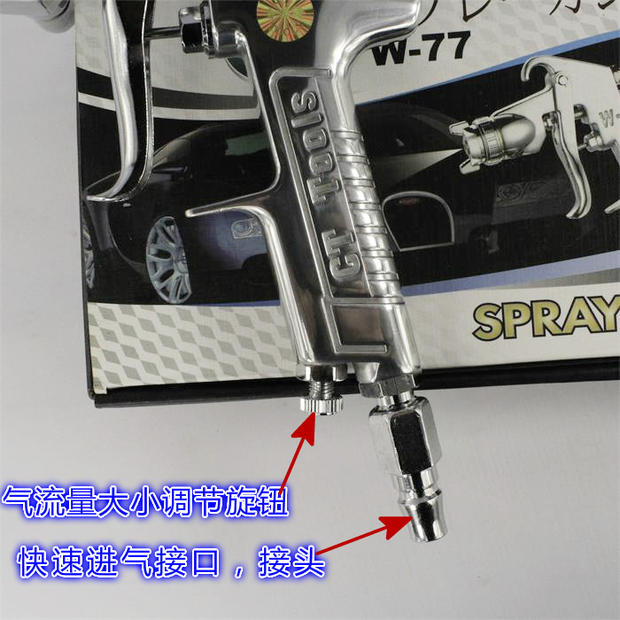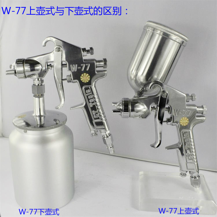 2.W77喷枪**早应用家具的底面漆喷涂,因有传统的气道结构,与一直不断改良的空气雾化帽,在家具和五金行业得到广泛应用,喷枪的接管简单,维护方便,成本低廉,是行业喷漆师傅的**