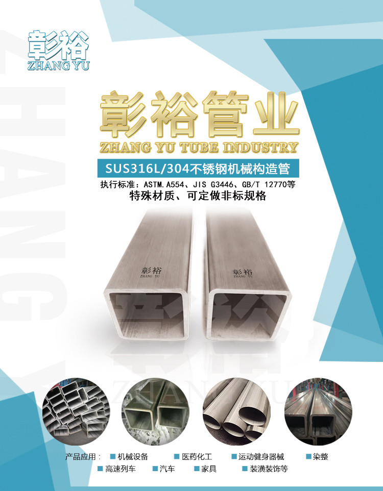 佛山市彰裕不锈钢有限公司,工厂位于佛山市顺德区北滘镇水口工业区,专业生产、研发、销售SUS304-316L等材质、不锈钢机械构造管、流体输送用不锈钢管配管(工业管)、不锈钢食品卫生级管、不锈钢薄壁饮用水管、管件等。产品均符合国标GB、美标fpSTM、欧标、日标JIS等执行标准。彰裕不锈钢产品广泛应用于食品包装机械、电镀设备、五金制品、石化、电力、造纸、酿酒、生物制药、污水处理工程、医院、学校等行业及工程项目。彰裕不锈钢管产品及其综合解决方案的应用遍及中国各大地区。