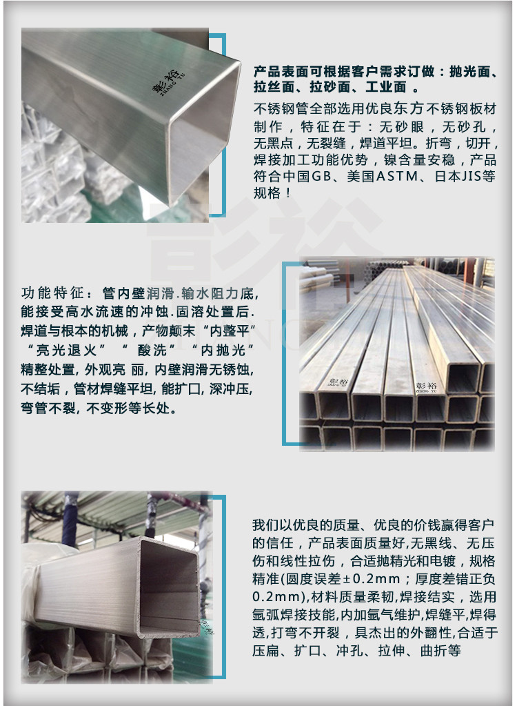 三、生产标准:fpSTM fp312、fpSTM fp554、GB/T12770、JIS G3446四、材质:316,316L,sus31603,S31603,fpISI316L,fpSTM316L,SUS316,国标,美标,日标,欧标