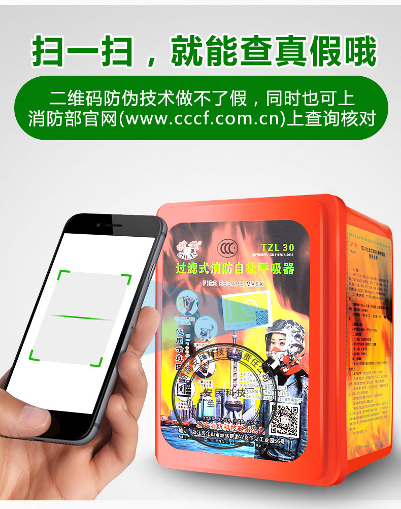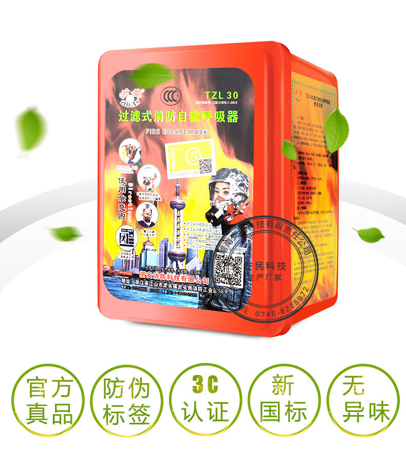 消防面具口罩防火防烟防毒面具酒店家用火灾逃生面具面罩呼吸器