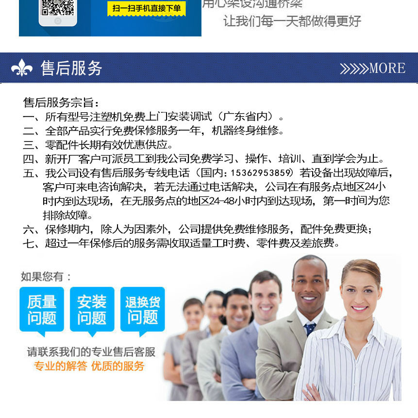 2、三段温度控制、射速、背压、螺杆转速、无段调整,适合各种精密 工程塑