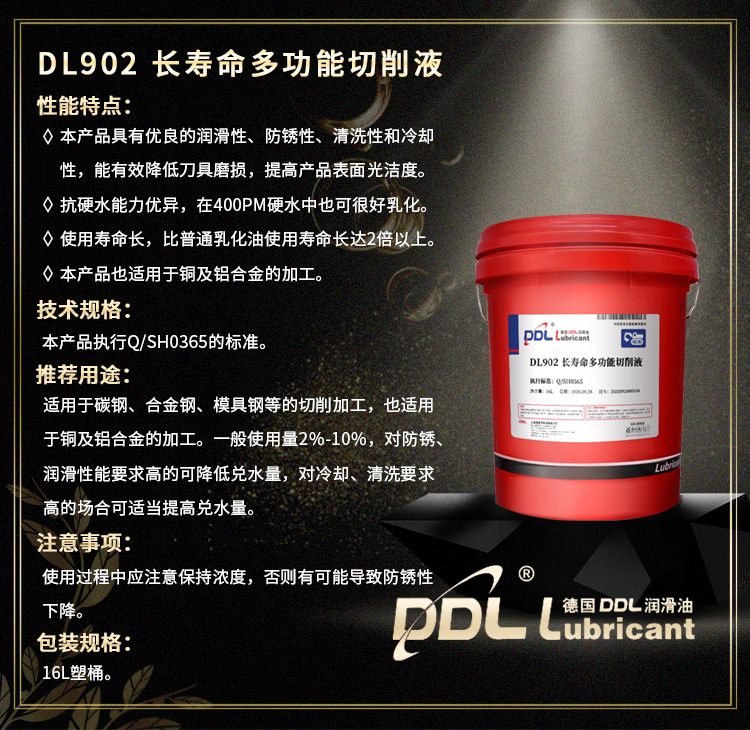本产品具有优良的润滑性、防锈性、清洗性和冷却性,能有效降低刀具磨损,提高产品表面光洁度;