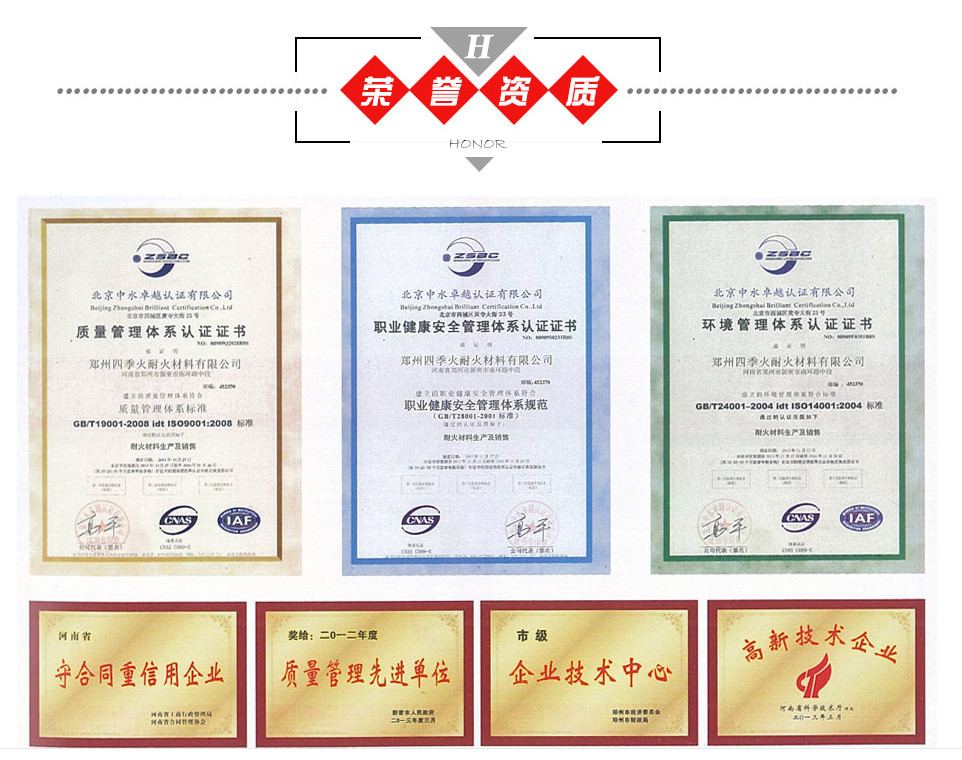郑州四季火耐火材料厂家,二十年耐火原材料起家,对于耐火材料有着专业的技术团队,多年的技术经验,从原料到产品加工成型,严格把控每一项,从而保证产品质量,我公司深知,用户要求千条万条,归纳起来有四条:质量可靠、价格合理、交货及时、服务周到。我们以此为基础,以“创造**,服务社会”为企业发展的核心理念,竭诚与国内外朋友合作,共谋大业。
