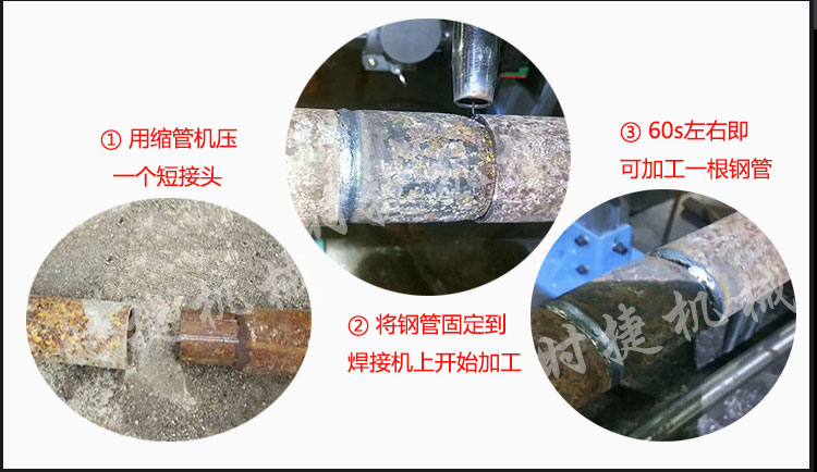 第三步,以上东西准备好之后**可以开始工作了,先用缩管机压一个套头,然后放在焊接机上,大概60秒一根管子,效果棒棒的。