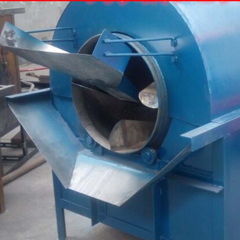点火升温应启动电机,使圆筒转动,避免圆筒局部受热;圆筒预热到50℃左右即可进料炒籽,待物料炒到合适时(炒料时间视火力大小,一般为14-20分钟,温度升到130℃左右)立即判断可否出料,(从进料口取样来判断)如能出料即可打开出料口挡板,物料即陆续外出;下班停机将炉火熄灭。