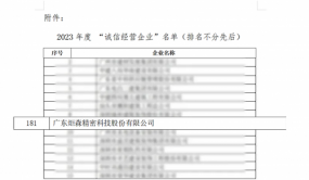 - 再获肯定!炬森精密连续两年荣膺“诚信经营企业”称号