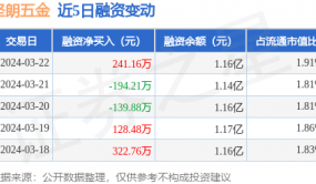 - 坚朗五金:3月22日融资买入570.89万元,融资融券余额1.19亿元
