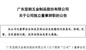 新京报讯(记者郑明珠)3月11日,广东坚朗五金制品股份有限公司(简称“坚朗五金”)发布公告称,公司董事会近日收到独立董事高刚的书面辞职报告,因在境内上市公司担任独立董事超过3家,高刚申请辞去公司第四届董事