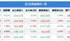 - 坚朗五金 6 月 22 日主力资金净卖出 1054.31 万元