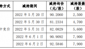 CFi.CN讯:一、 股东减持情况1、股东减持股份情况股东名称减持方式减持期间减持均价 (元/股)减持股数 (股)减持占总 股本比例赵键集中竞价2022年5月20日90.20602,5000.0008%2022年5月30日81.23344,7000.0015%20