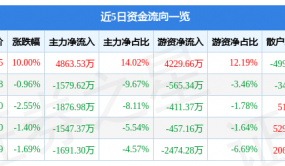 股价上涨10.00%,收盘价为104.15元。该股于下午 1:24:59涨停。截止15:00:31未打开涨停,封住涨停时长1小时35分。其涨停封板结构一般,最高封单量:208.53万,目前封板数量:57.22万,占实际流通盘0.50%,占当日成交